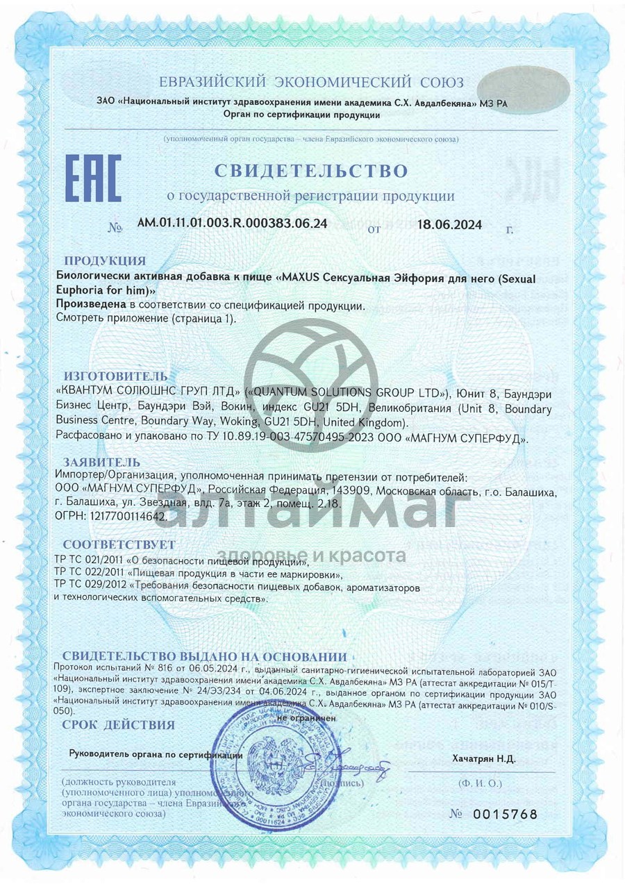 - Купите Maxus Sexual Euphoria для него 60 капсул в Уфе по доступной цене 949 ₽ с доставкой на дом или заберите Ваш заказ в Уфе из ближайшего пункта выдачи, сделав заказ на AltaiMag.ru.